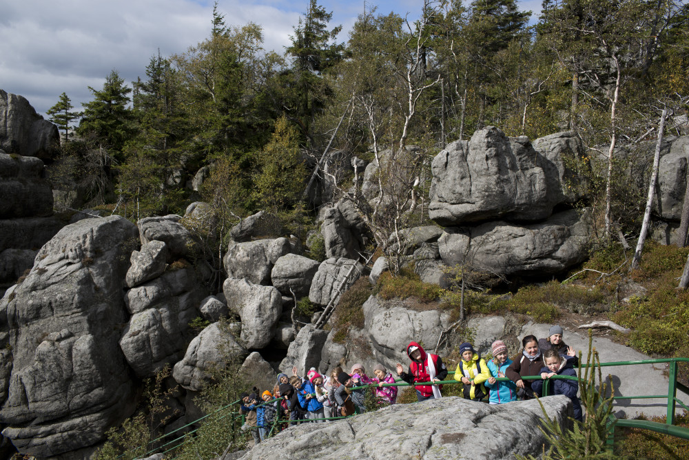 W trakcie zielonej szkoły oferujemy wycieczkę do Parku Narodowego Gór Stołowych, gdzie przejdziemy przez rezerwat Błędne Skały - malowniczy labirynt, pełen szczelin i zaułków, powstały w wyniku procesów wietrzeniowych i erozyjnych. Wiele skał ma tu własną nazwę, a miejsce emanuje pozytywną energią i w niezwykły sposób działa na wyobraźnię dzieci. Pojedziemy również do Kudowy Zdroju - uzdrowiska z okazałą pijalnią i parkiem zdrojowym, pełnym rodzimych i egzotycznych gatunków roślin. Zależnie od preferencji uczestników, odwiedzimy też słynną Kaplicę Czaszek w Czermnej lub pozostaniemy w Kudowie Zdroju i zwiedzimy Muzeum Zabawek.
